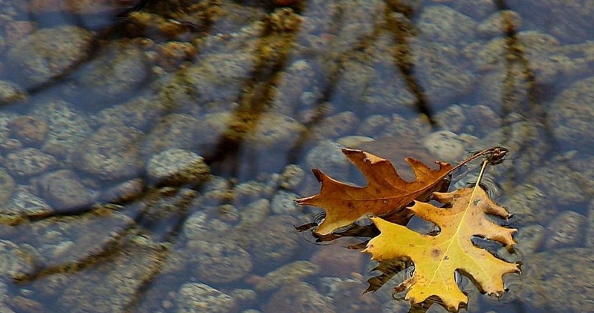I sat on the shore of this charming little brook observing it and its effect on me. It was lovely. My bare feet recovered in its coolness. My eyes delighted at the sight of the sun glistening off it in a million little points of light. My ears took in the sounds of the moving water, crinkled colorful leaves floating by effortlessly. Almost.